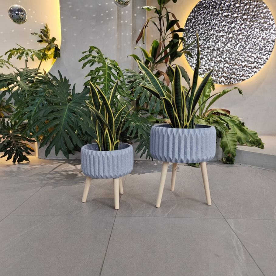 Modern Unique Design Wood Leg Stand with Fibre Clay Flower Planter Pot Indoor Decor for Home & Garden