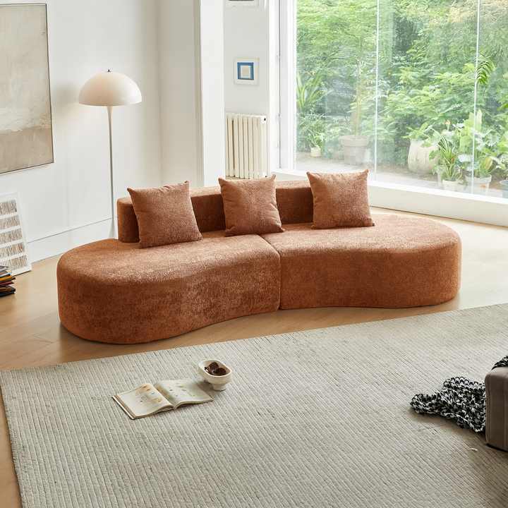 Modern Upholstered Square Modular Sectional Sofa Set Curved Design Villa Living Room Bedroom Apartment Orange Fabric