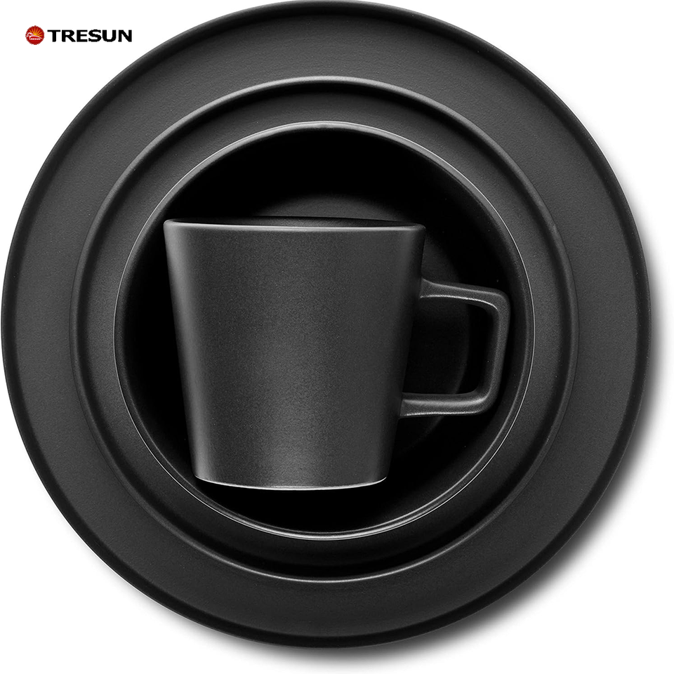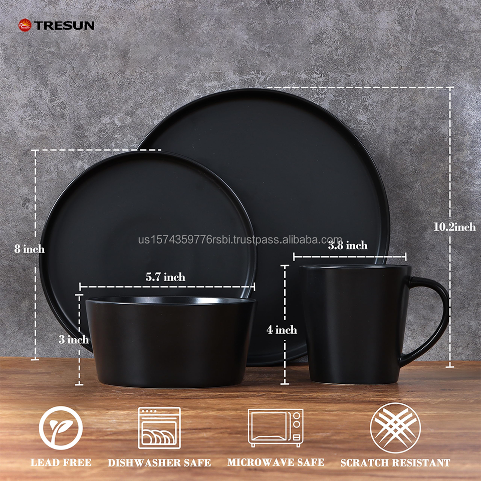 Modern Upscale Design Simple Ceramic Dinnerware Set for Restaurant & Hotel Black China Plate for Salad & Steak-Elegant & Simple