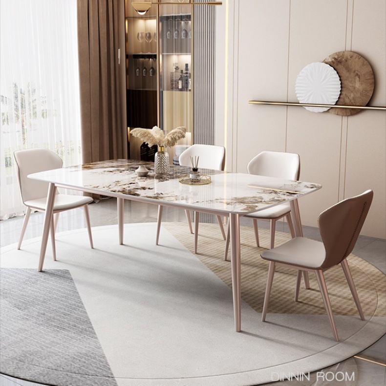 Modern Upscale Dining Room Italian Dining Table Chair Set Marble Top 4 Seater Dining Table Set