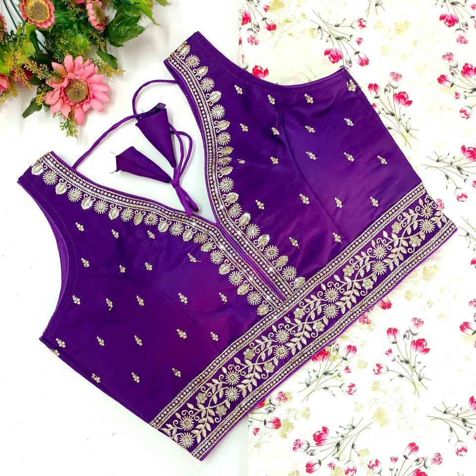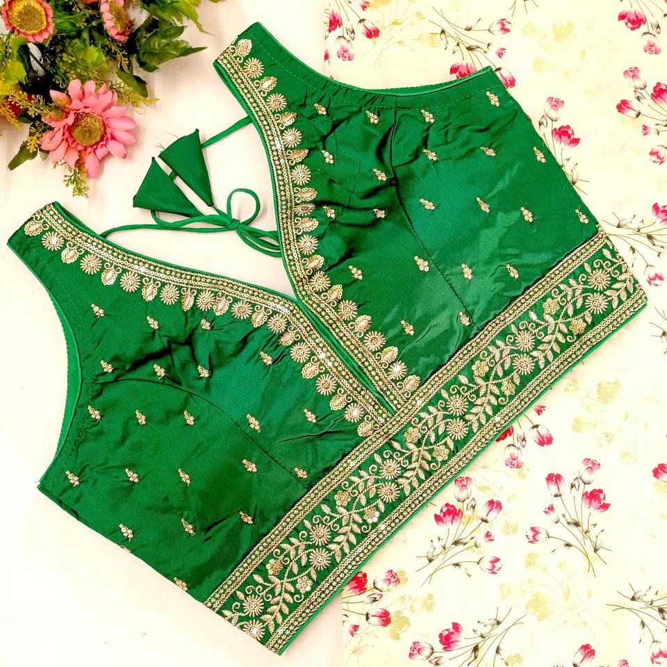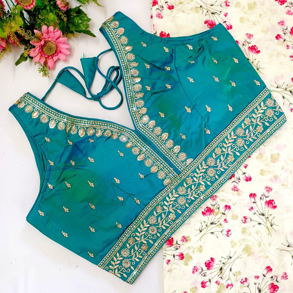 Modern V-Neck Blouse for Weddings Fashionable Woven Design with Zari Thread Work Embroidered Logo/Pattern Sequined Decoration