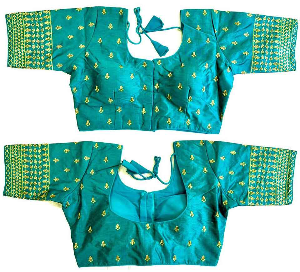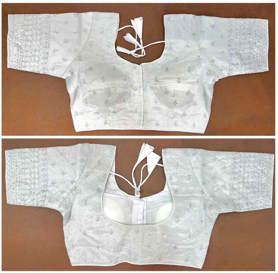 Modern VRINDA Silk Strach Blouse Summer Formal Top with Front Open Pattern and Beautiful Knot Ready to Wear