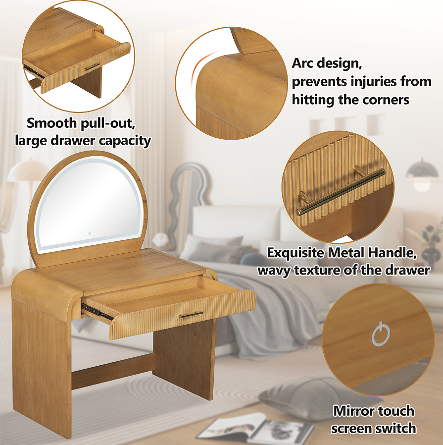 Modern Vanity Table with Touch Screen Lighted Mirror MDF Panel Dressing Table with Drawer for Bedroom Hotel & Living Room