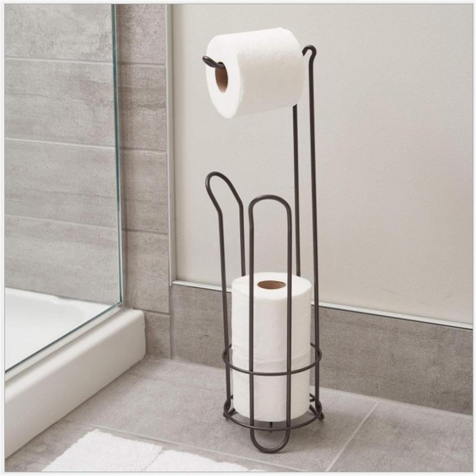 Modern Vertical Iron Toilet Paper Rack Eco-Friendly Free Standing Floor-to-Ceiling Storage for Home & Office
