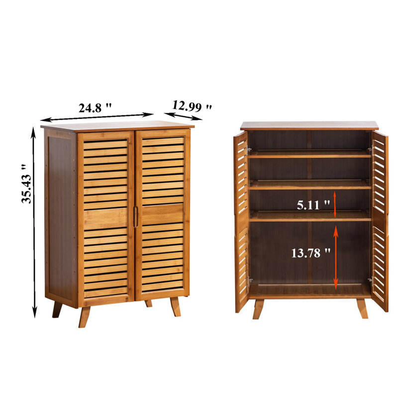 Modern Vintage Bamboo Shoe Cabinet with Double Doors Extendable Organizer for Home Furniture Living Room Furniture