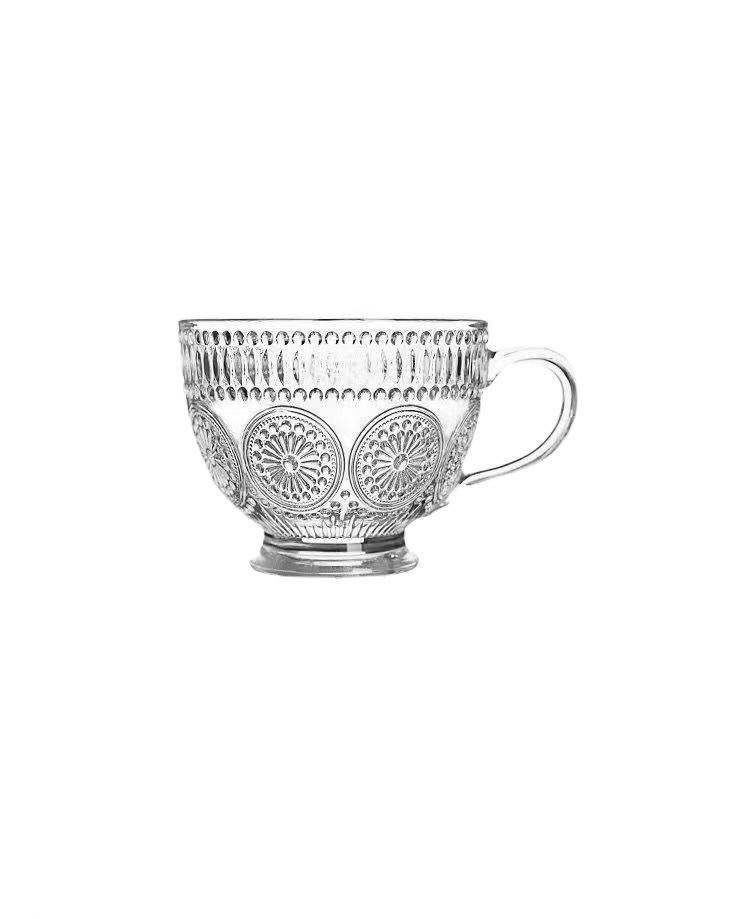 Modern Vintage Embossed Glass Cups Clear Breakfast Mugs with Handle Stackable Drinkware for Water Beer for Parties