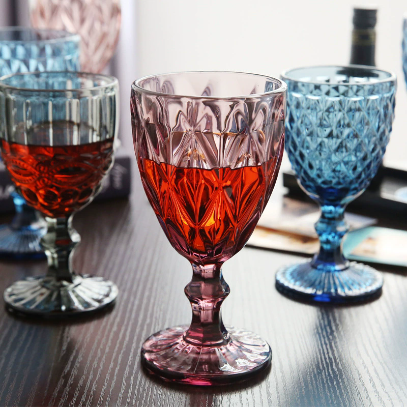 Modern Vintage Glass Goblets Wine Glasses Water Goblet Glass Cup Hot Selling Party for Wedding 240ML Event 300ml 10oz Blue Green