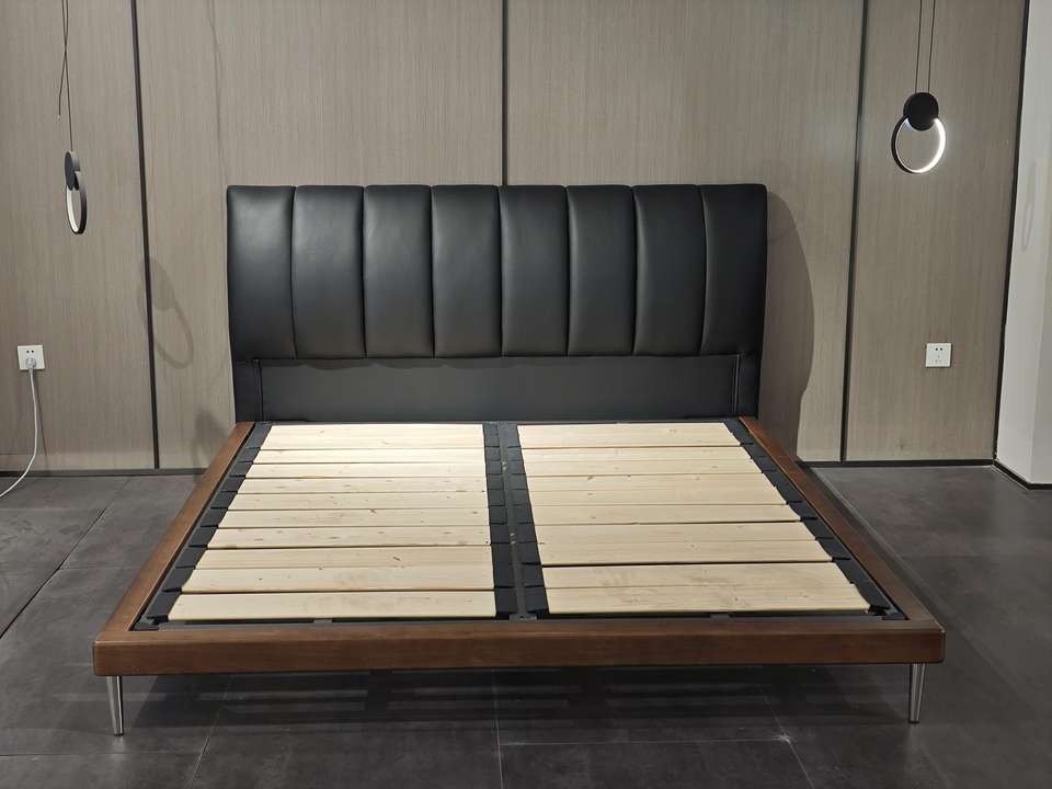Modern Vintage Queen Single Size Bed Frame Elegant Platform Adjustable Upholstered Leather Foam Solid Wood Home Bedroom Use