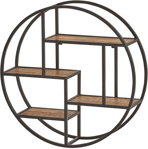 Modern Vintage Retro Style Round Wooden Bookshelf Open Office and Library Furniture with Iron Display Shelves for School Use