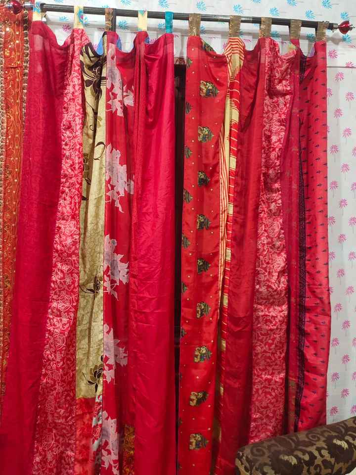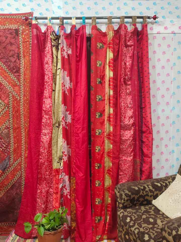 Modern Vintage Silk Sari Rod Pocket Floral Curtain Full Light Shading for Skylight Window Shade Home Decor Bedroom Living Room