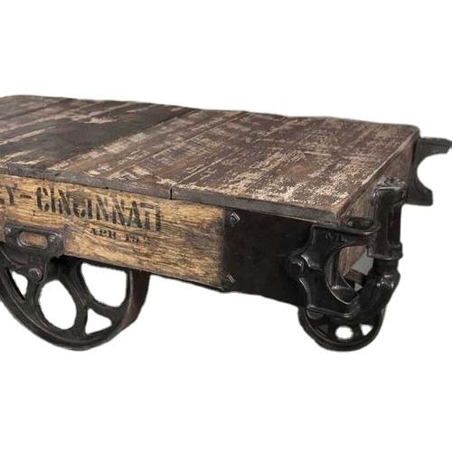 Modern Vintage Styled Rustic Finish Industrial Coffee Table Wooden with Castor Wheels for Living Room