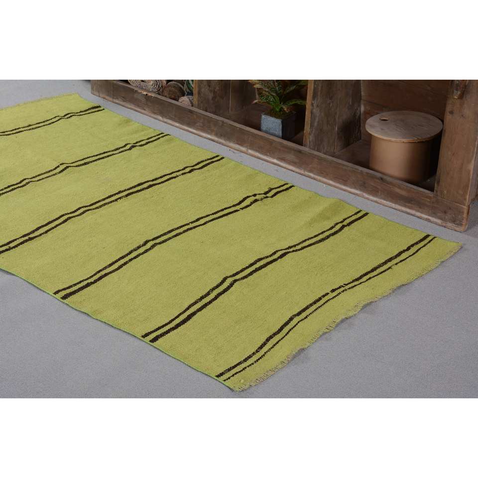 Modern Vintage Turkish Rug 3.6 X 6.4ft Green Brown Patchwork Design Classic Large Area Rectangle Wool Material Latex Room Rug