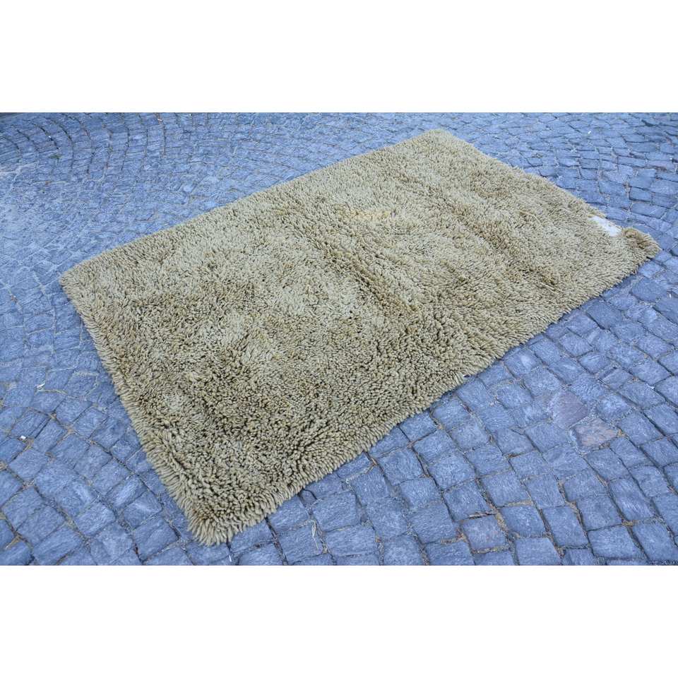 Modern Vintage Turkish Rug 4.3 X 6.6 ft Classic Beige Patchwork Design Handmade Wool Faux Rabbit Fur Latex Rectangle Hallway