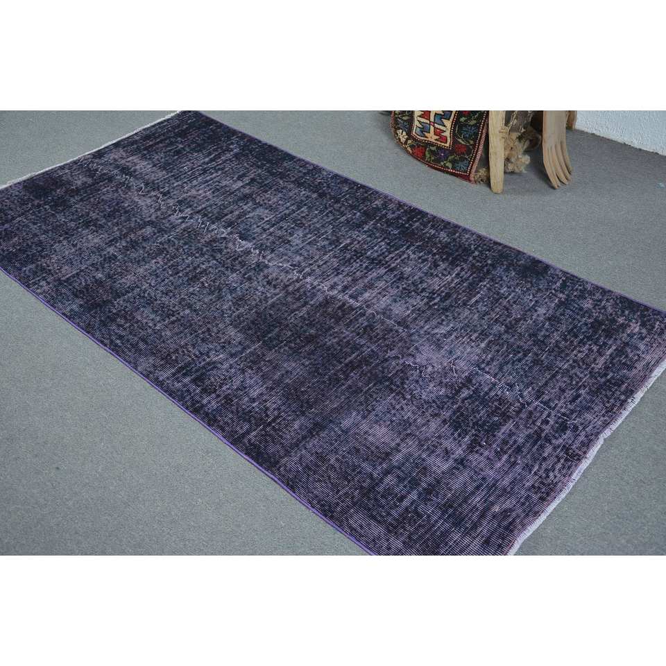 Modern Vintage Turkish Rug Purple 3.6 X 6.9 ft Large Rectangle Patchwork Wool Living Room Carpet with Latex Backing