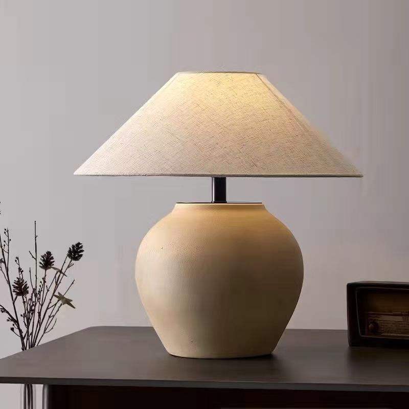 Modern Wabi Sabi Style Table Lamp with Pottery Jar Design Cloth Shade Desk Lamp Ornament for Living Room Hotel Bedroom Headboard