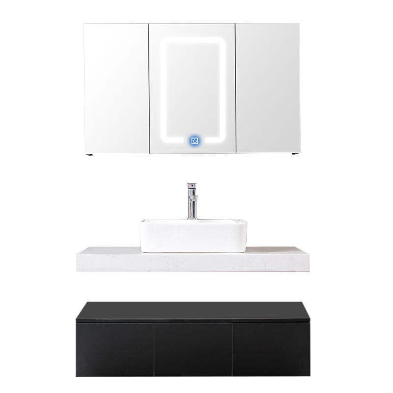 Modern Wall-Mounted Floating Bathroom Vanity Basin Sink Set Smart LED Mirror Wooden Storage Cabinet Marble Countertop Hotel