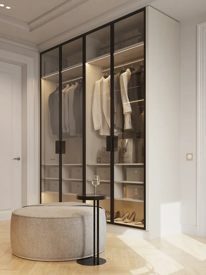Modern Wardrobe with Glass Doors Storage Cabinet Custom Closet Bedroom Furniture Design