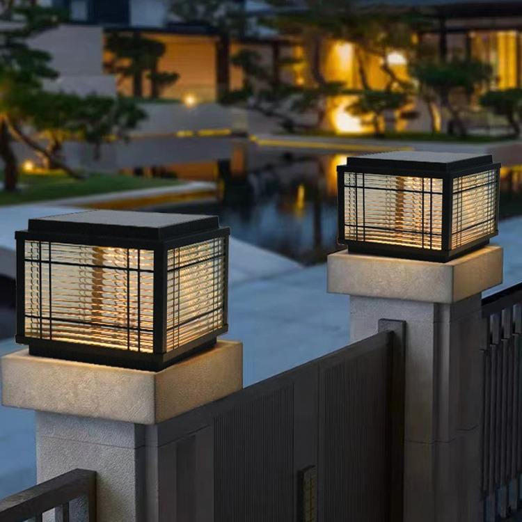 Modern Waterproof Solar Powered Head Enclosure Led Lawn Lamp Courtyard Garden Post Main Gate Outdoor Solar Pillar Light