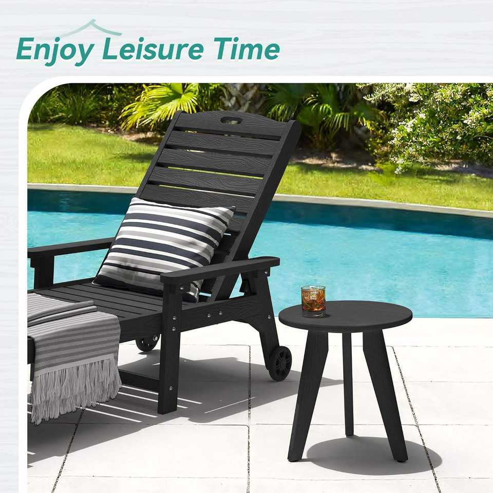 Modern Weather-Resistant Black Wood Outdoor Side Table Small Patio Porch Deck Plant Stand Dining Living Room Kitchen Exterior