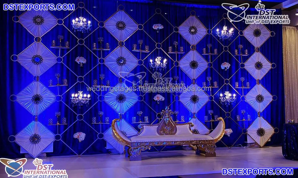 Modern Wedding Stage Metal Candle Stands Backdrop with Customizable Color & Size for Indian Reception Decor