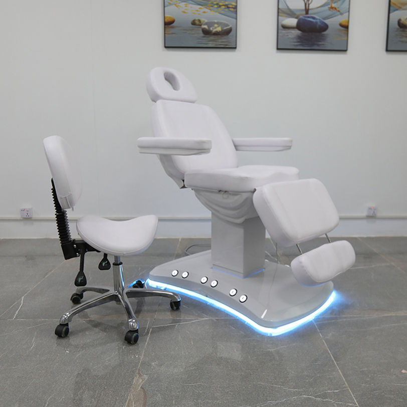 Modern White Beauty Salon Bed Foot Control Facial Spa Massage Table Electric Eye Lash Cosmetic Bed with Led Lighting