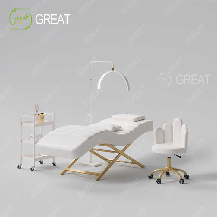 Modern White Beauty Salon Furniture Lash Bed Gold Metal Base Facial Spa Cosmetic Bed for Sale