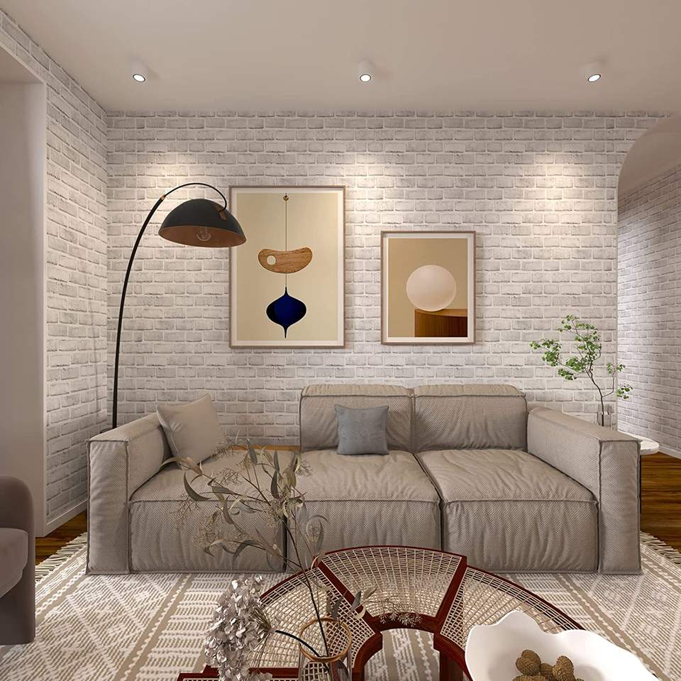 Modern White Brick Wallpaper Self-Adhesive 45cm X 10m Geometric Waterproof Fireproof for Kitchen Bedroom Bathroom Hotel Gym