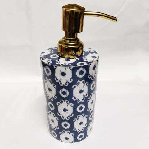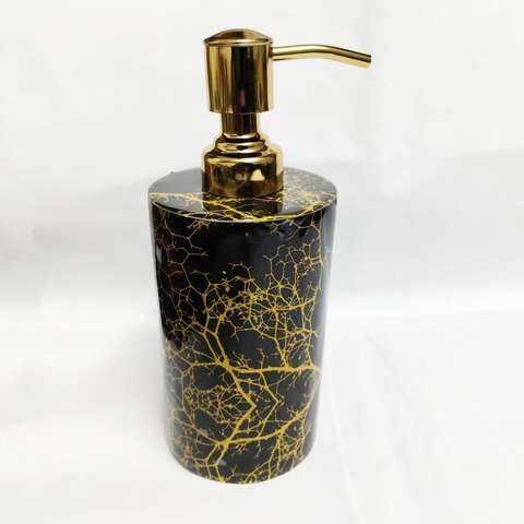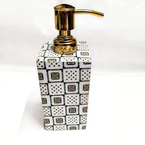 Modern White Ceramic Printed Dispense Bathroom Set Wooden Soap Dispenser Tumbler Tray Accessories