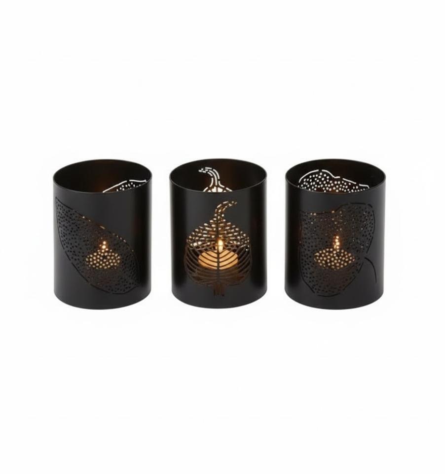 Modern White Colosseum Design Candle Holder Set Of 3 Decorative Cutout Cylindrical Votive Lanterns For Home Decor & Events