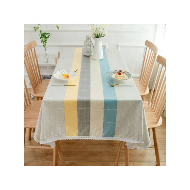 Modern White & Grey Farmhouse Pure Cotton Embroidered Rustic Durable Gatherings 60x90 Inches Machine Washable Stylish Tablecloth