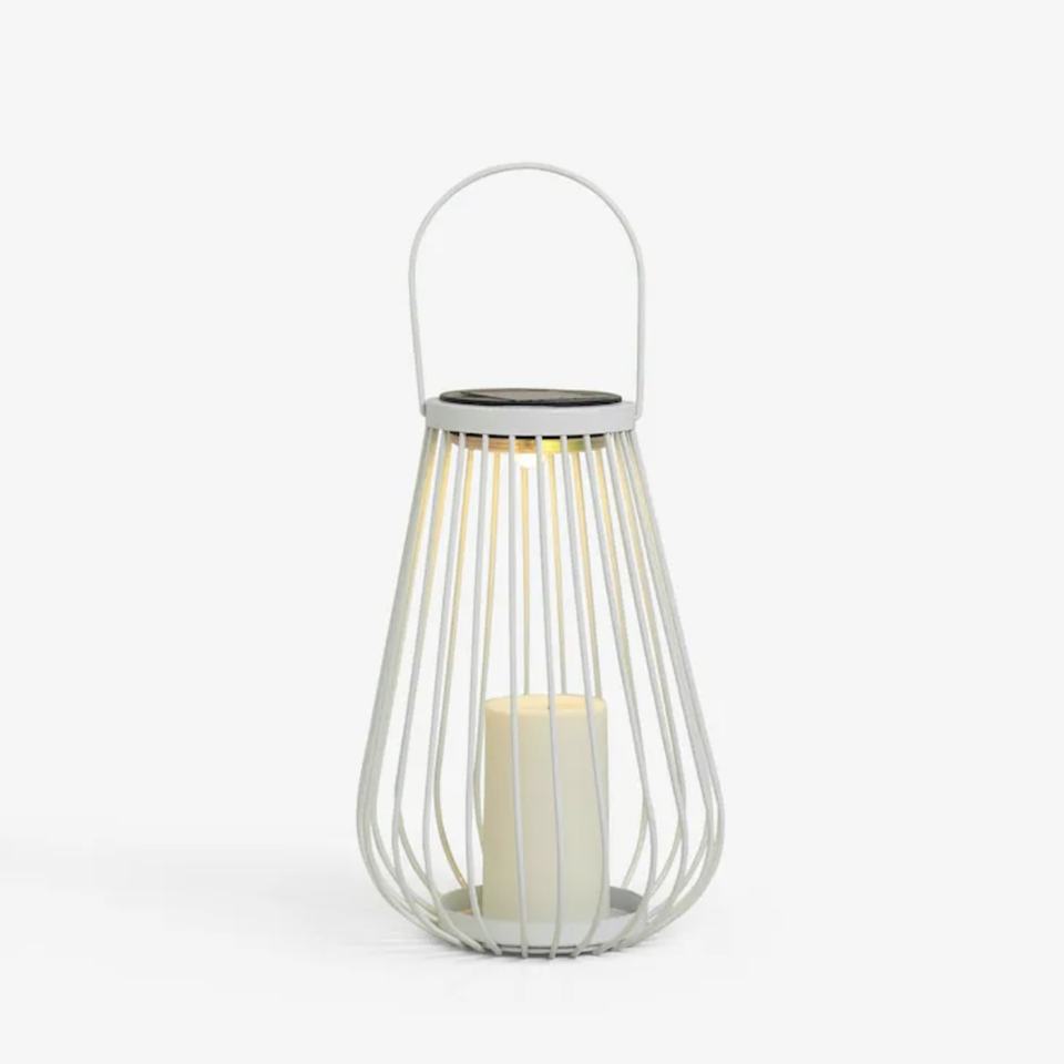 Modern White Metal Lantern & Wood Candle Holders Solar Panel Christmas Decor Pillar Candlestick Holder for Home Decoration