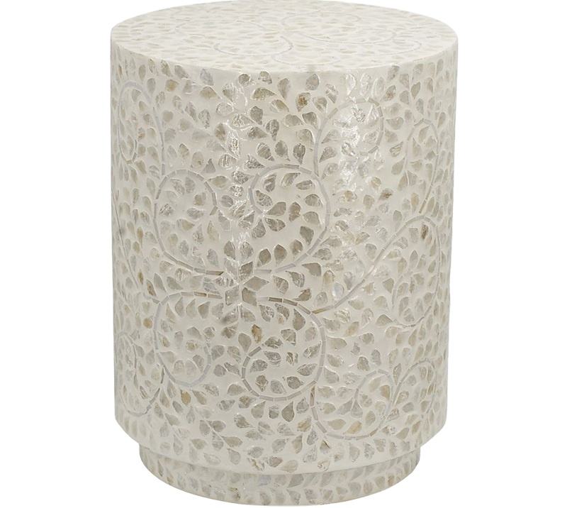 Modern White Polished Stool Floral MOP Inlay Decorative Kitchen Bedroom Furniture for Apartment Bulk Quantity Storage Warehouse