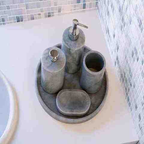 Modern White Resin Spa Style Bathroom Accessories Set Easy-to-Clean Rectangle Shape Bathroom Decor