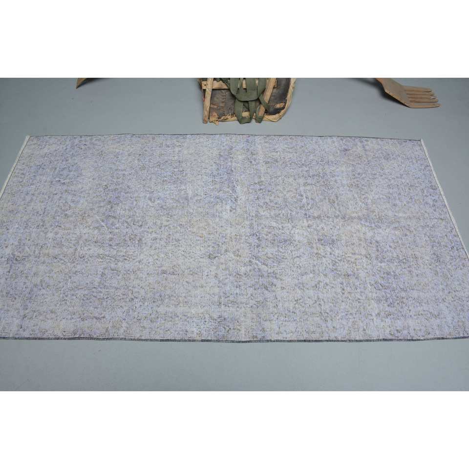 Modern White Vintage Turkish Rug 3.6 X 6.9 ft Wool Patchwork Pattern for Living Room Decor Rectangle Hallway Latex Room Rug