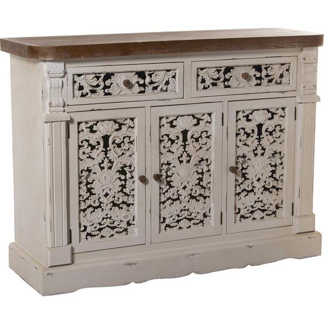 Modern White Wooden Hand Carved Sideboard Cabinet with Storage Drawers for Home Dining & Living Room Furniture