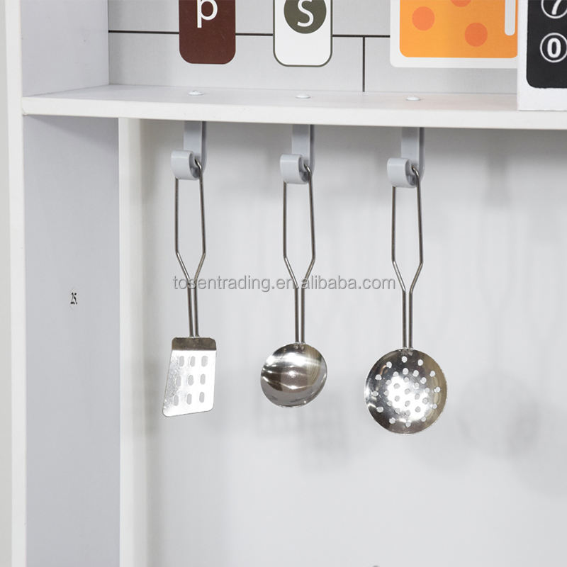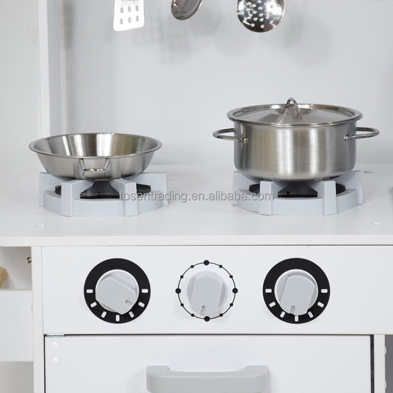 Modern White Wooden Play Kitchen with Vintage Clock Fridge, Microwave, Stove & Sink, Premium Pretend Cooking Set for Kids