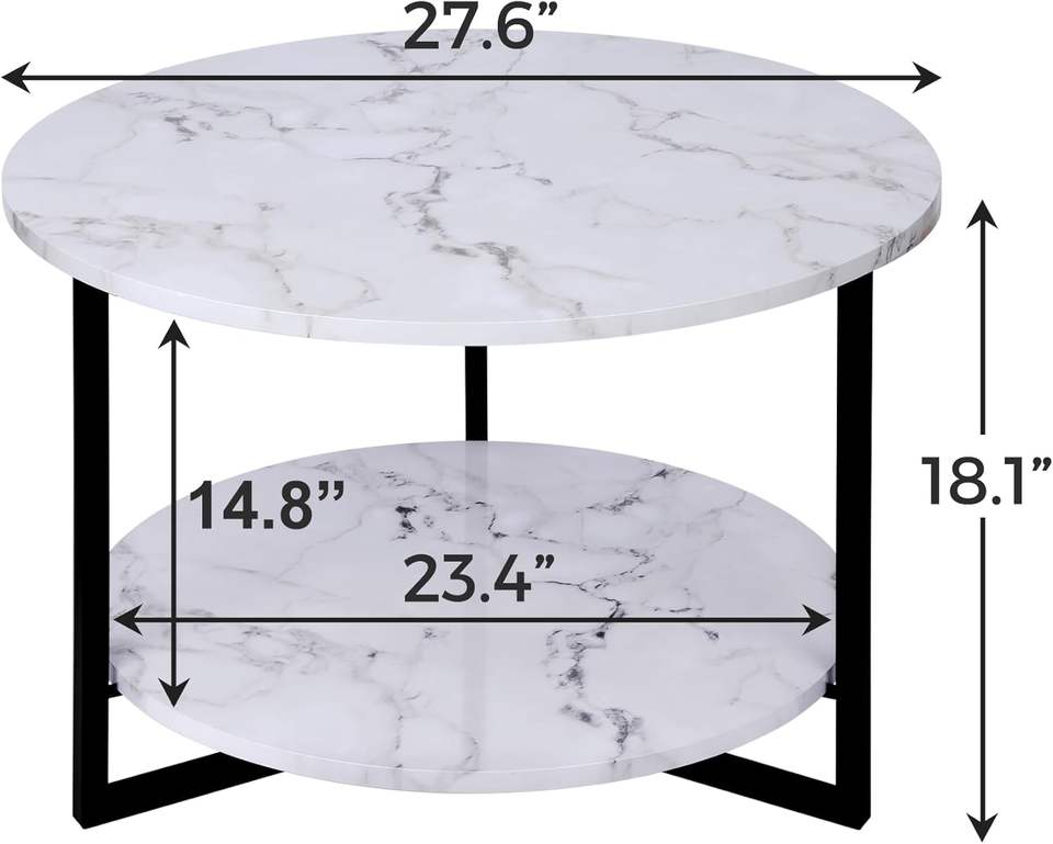 Modern White and Black Faux Marble Coffee Table with Storage Living Room Furniture Small Round Tables