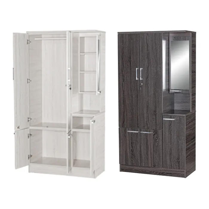Modern White or Dark Oak Plywood Bedroom Cabinet with Built-In Side Makeup Mirror Durable Design for Home or Villa Use