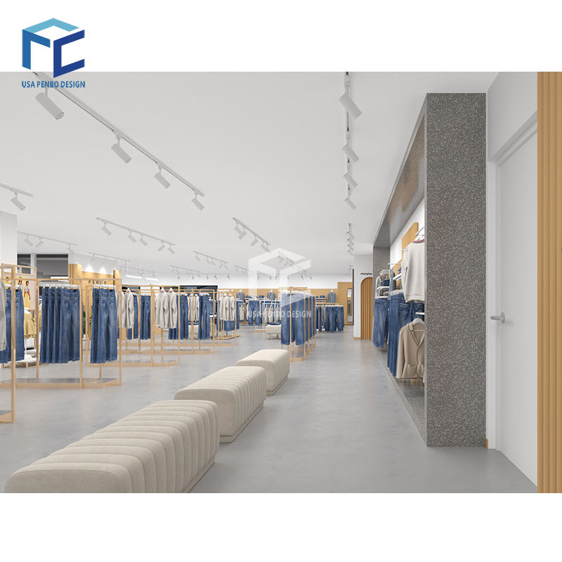 Modern Wholesale Display Racks for Retail Shop Customized Metal & Wood Clothing Shelves for Jeans Interior Design