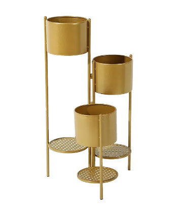 Modern Wholesale Metal Three Pots Planters Stand Handmade Brass Plated For Garden Decor
