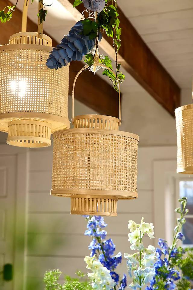 Modern Wicker Handwoven Metal Bamboo Lamp for Dining Room Teahouse Restaurant Homestay Corridor Home Decor Creative