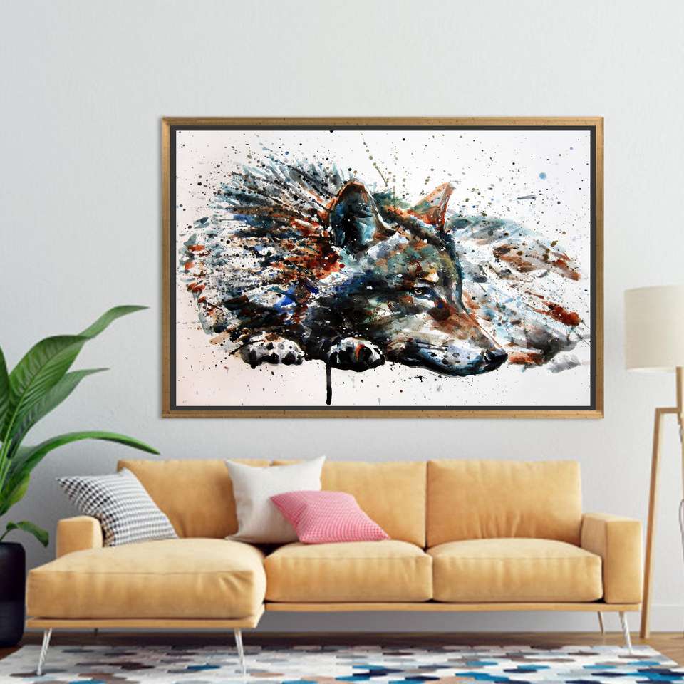 Modern Wolf Painting Print: Elegant Tempered Glass Wall Art Canvas,GOLD FRAMED CANVAS