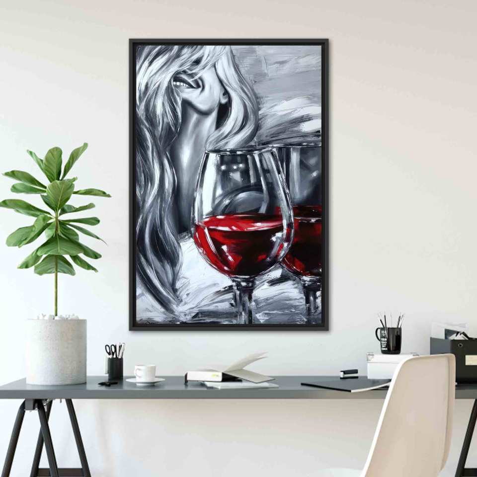 Modern Woman Wine Print Canvas - Elegant Wall Art for Home Decor,Black Framed