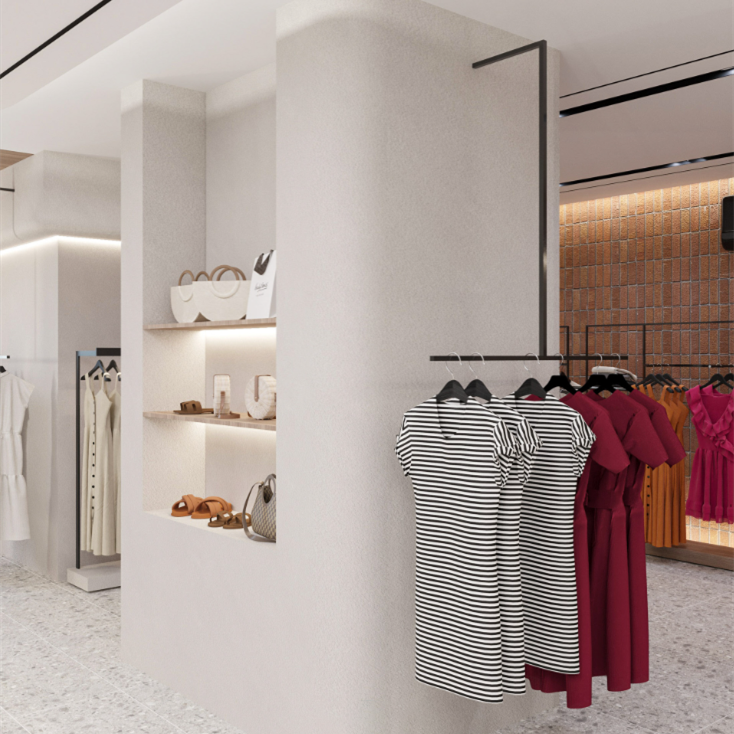 Modern Women's Clothing Store Interior Furniture Design Built-in Wall Shelf Custom Solid Wood Paint Arc Island Counter