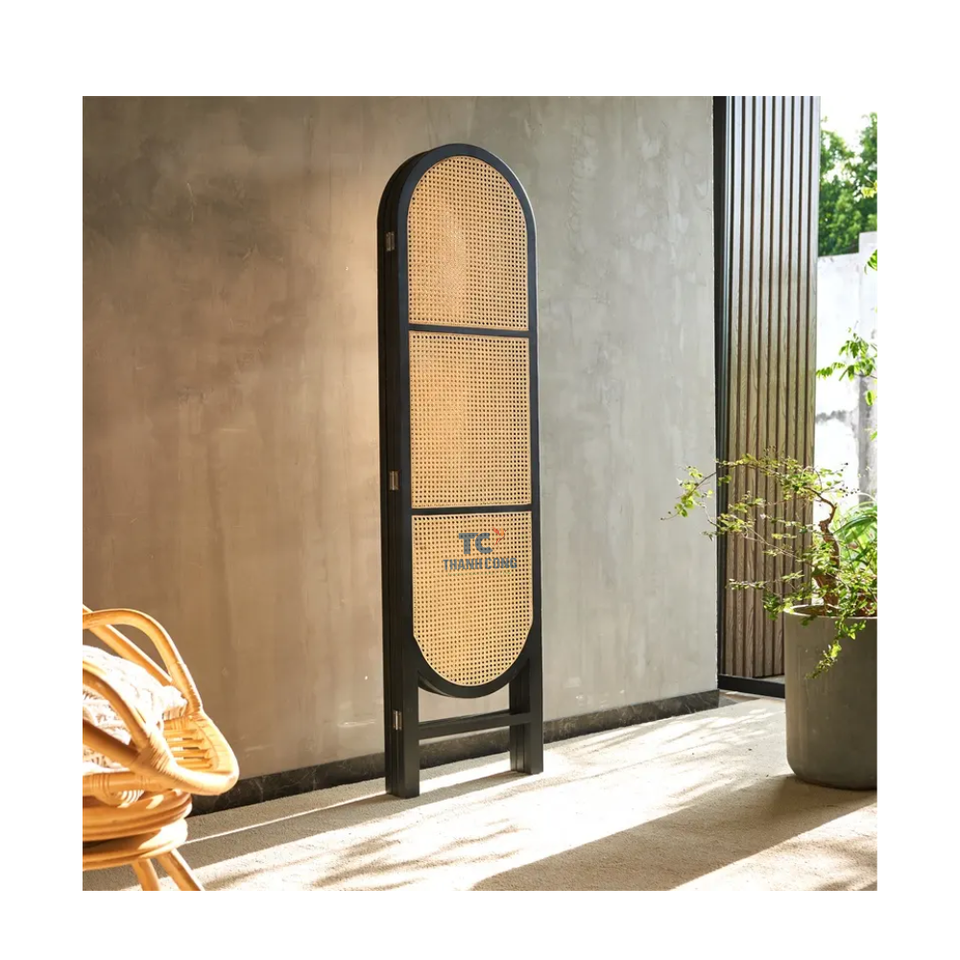 Modern Wood Frame Natural Rattan Screen Cane Foldable Partition Nordic Design Rattan Divider With 2-Year Warranty