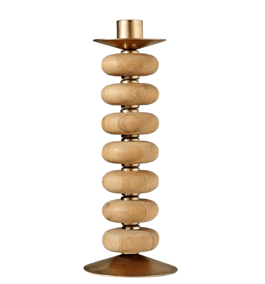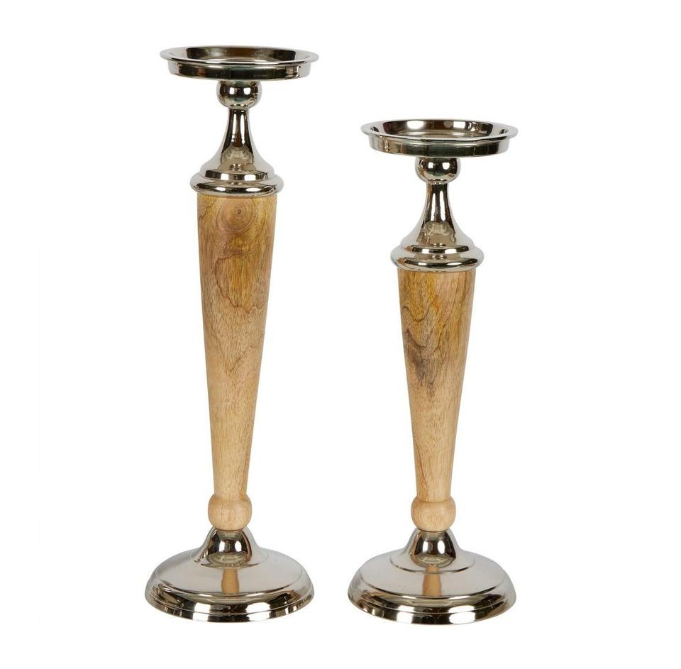 Modern Wood & Silver Candle Holder with Tapered Wooden Column and Polished Metallic Accents for Home & Table Styling