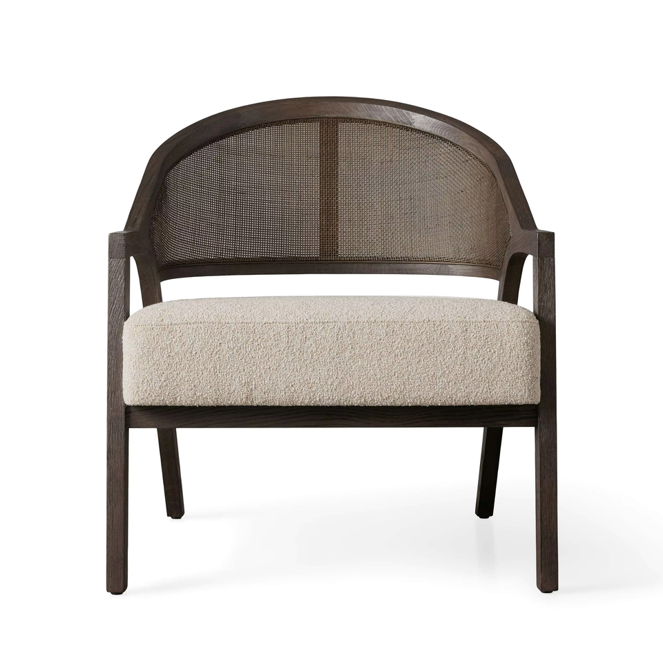 Modern Wooden Armchair with Seat Cushion and Rattan Weave