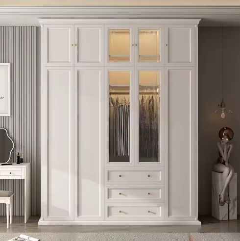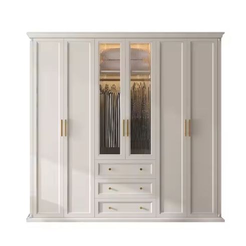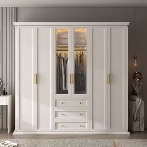 Modern Wooden Bedroom Couple Wardrobe With Glass Door Bedroom Furniture Set Solid Wood 6 Door Storage Wardrobe Almirah