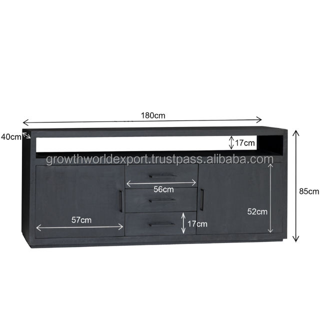 Product name:Industrial Black Wooden Sideboard with 2 wooden door & 3 drawers