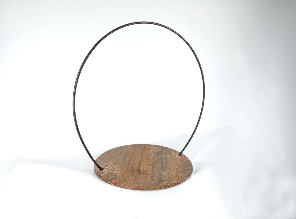 Modern Wooden Cake Stand With Black Metal Arch Handle Ideal For Bakery Display Event Tables And Dessert Presentation From India